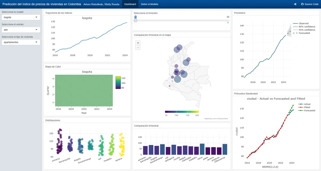 El proyecto consistió en desarrollar un dashboard para mostrar el cambio relativo de los niveles de precios de las viviendas nuevas en las principales ciudades de Colombia.
